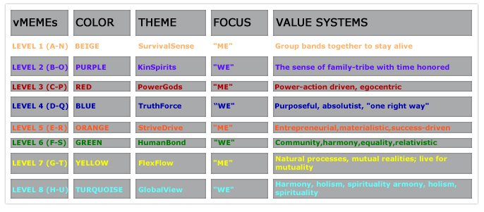 Another method of looking at culture is called Spiral Dynamics which is closely aligned to the Seven Levels of Organisational Consciousness and can also be used to measure cultures. Both The Seven Levels of Organisational Consciousness and Spiral Dynamics use colour coding to represent different levels hence our choice of ‘Full Spectrum’ for our approach.